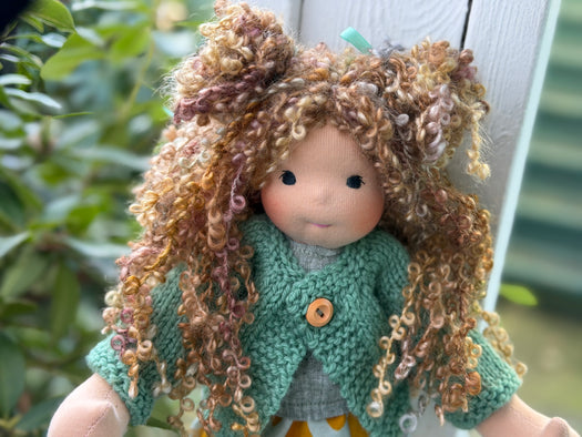 Made with natural fibres, each Little Friend has  hand-dyed hair yarn, a cotton knit “skin,” and is stuffed with West Coast wool for that comforting, natural weight children love. We’re happy to personalize your doll with freckles, a messy buns, or even a name change, just let us know!