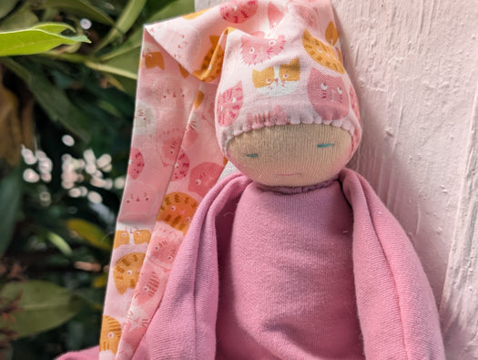 Wool is an incredible material for children, it is naturally antibacterial and will absorb the smell of home. Because of this, I think it's a sweet thing for mama or papa to 'wear' the doll for a few hours to imbue their scent on the doll, creating a comfort object for the child.