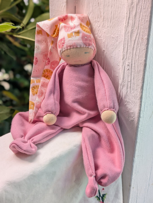 What a sweet doll to begin your life with. Lovingly hand stitched using all natural materials with a wool stuffed head. These dolls faces are intentionally soft and serene to reflect the dreamlike state of small children. As they grow older, the doll is an invitation to open ended play.