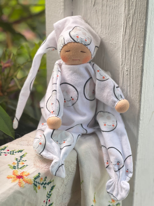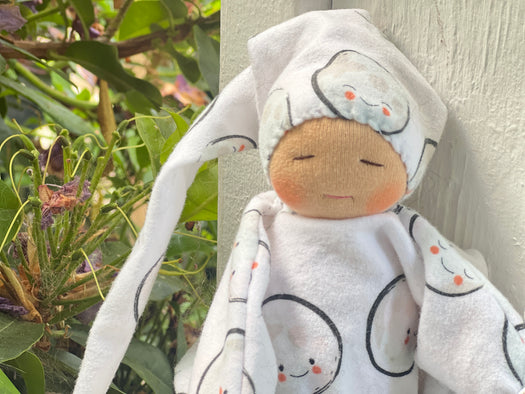 What a sweet doll to begin your life with. Lovingly hand stitched using all natural materials with a wool stuffed head. These dolls faces are intentionally soft and serene to reflect the dreamlike state of small children. As they grow older, the doll is an invitation to open ended play.