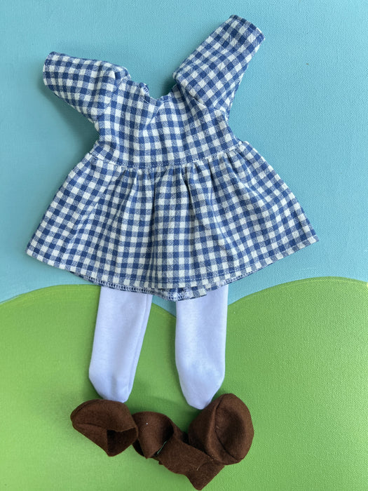 Little Friend Outfit - Blue Gingham (Dark Brown Shoes)