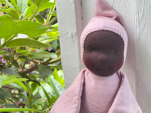 Perfect for hugs and snugs!  This is our super soft Snuggle Doll!  This friend is a perfect napping or cuddle buddy.  Made from cotton fabric and stuffed with wool. This sweet little doll is the perfect comfort toy. These squishy friends are around 14" tall and recommended for ages 1 & up