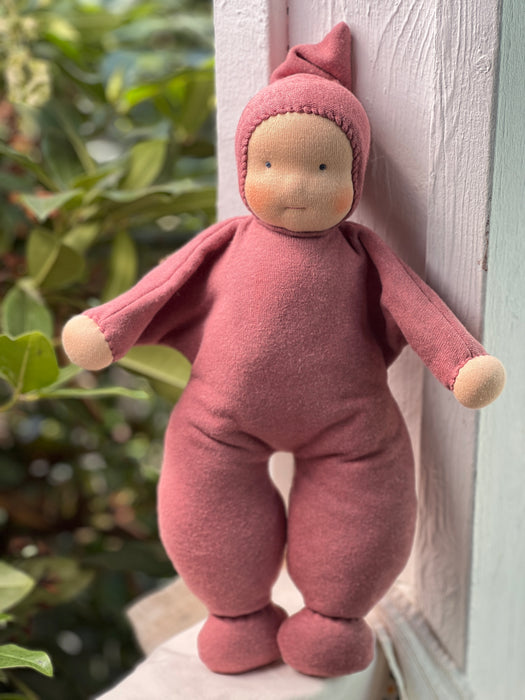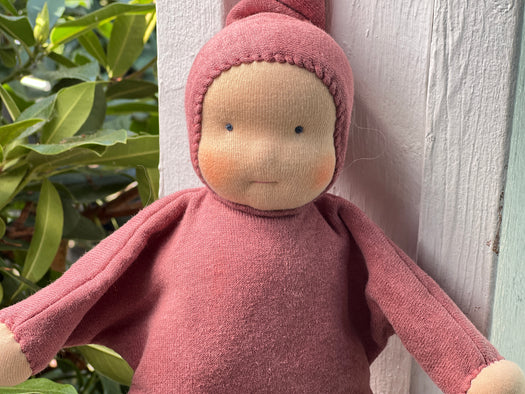 Perfect for hugs and snugs!  This is our super soft Snuggle Doll!  This friend is a perfect napping or cuddle buddy.  Made from cotton fabric and stuffed with wool. This sweet little doll is the perfect comfort toy. These squishy friends are around 14" tall and recommended for ages 2 & up
