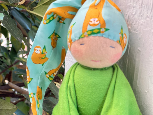 Wool is an incredible material for children, it is naturally antibacterial and will absorb the smell of home. Because of this, I think it's a sweet thing for mama or papa to 'wear' the doll for a few hours to imbue their scent on the doll, creating a comfort object for the child.
