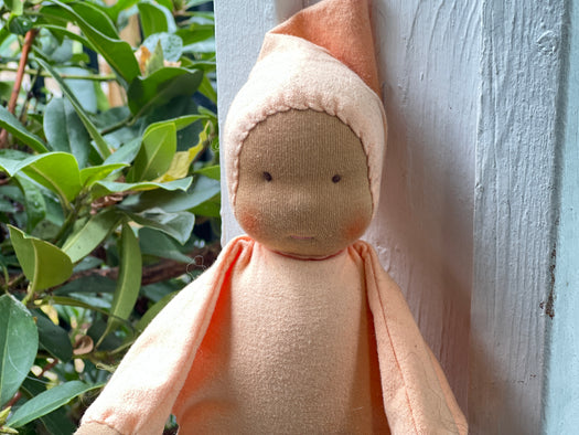 Perfect for hugs and snugs!  This is our super soft Snuggle Doll!  This friend is a perfect napping or cuddle buddy.  Made from cotton fabric and stuffed with wool. This sweet little doll is the perfect comfort toy. These squishy friends are around 14" tall and recommended for ages 2 & up