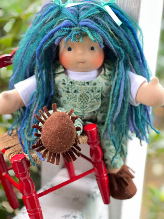 Our Cuddle Dolls are a smaller version of our Sitting Dolls. Their design makes them perfect for children who love to carry their doll everywhere — huggable, posable, and endlessly lovable. These are great 'first dolls' as their hair is a bit simpler with no hand spun art yarn in it and simple clothing for dressing and playing.