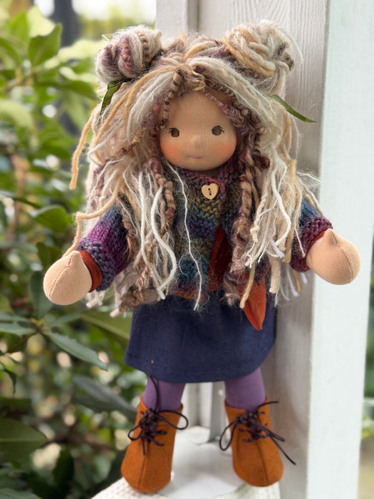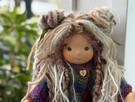 Made with natural fibres, each Little Friend has  hand-dyed hair yarn, a cotton knit “skin,” and is stuffed with West Coast wool for that comforting, natural weight children love. We’re happy to personalize your doll with freckles, a messy buns, or even a name change, just let us know!