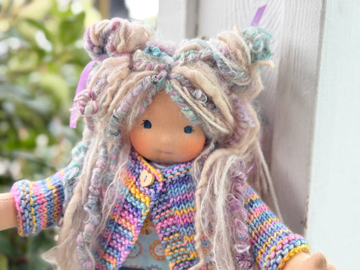 Made with natural fibres, each Little Friend has  hand-dyed hair yarn, a cotton knit “skin,” and is stuffed with West Coast wool for that comforting, natural weight children love. We’re happy to personalize your doll with freckles, a messy buns, or even a name change, just let us know!