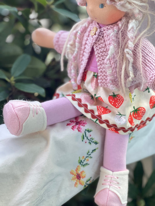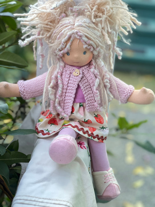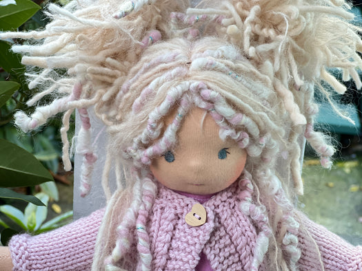 Made with natural fibres, each Little Friend has  hand-dyed hair yarn, a cotton knit “skin,” and is stuffed with West Coast wool for that comforting, natural weight children love. We’re happy to personalize your doll with freckles, a messy buns, or even a name change, just let us know!