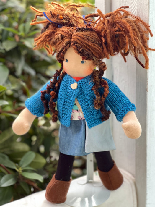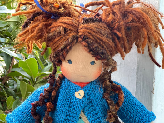 Made with natural fibres, each Little Friend has  hand-dyed hair yarn, a cotton knit “skin,” and is stuffed with West Coast wool for that comforting, natural weight children love. We’re happy to personalize your doll with freckles, a messy buns, or even a name change, just let us know!