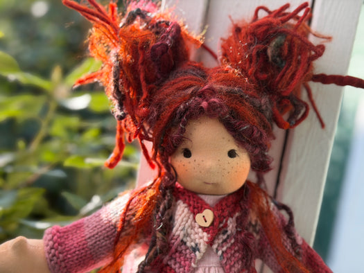 Made with natural fibres, each Little Friend has  hand-dyed hair yarn, a cotton knit “skin,” and is stuffed with West Coast wool for that comforting, natural weight children love. We’re happy to personalize your doll with freckles, a messy buns, or even a name change, just let us know!