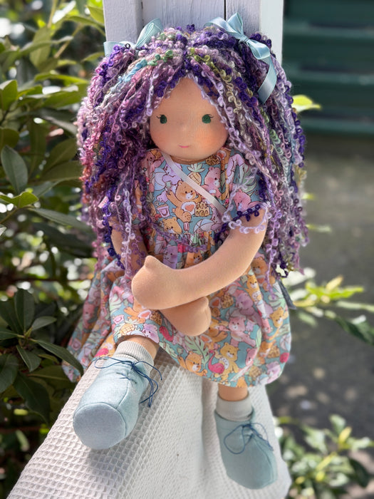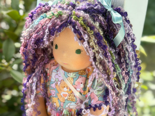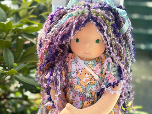 • Hair made from natural fibre yarns (like real hair, it may become a little frizzy with love and play, adding to its character!)