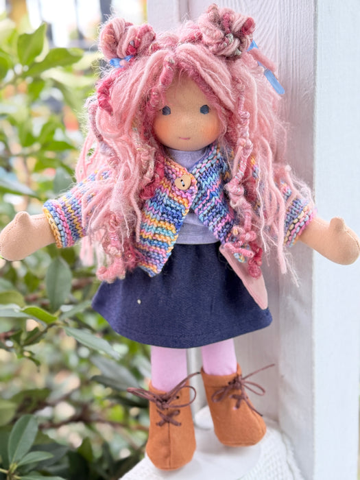 Made with natural fibres, each Little Friend has  hand-dyed hair yarn, a cotton knit “skin,” and is stuffed with West Coast wool for that comforting, natural weight children love. We’re happy to personalize your doll with freckles, a messy buns, or even a name change, just let us know!