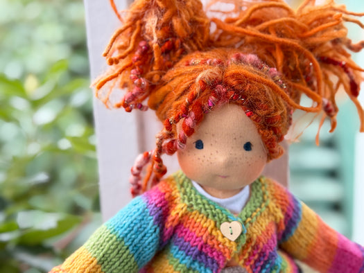 Made with natural fibres, each Little Friend has  hand-dyed hair yarn, a cotton knit “skin,” and is stuffed with West Coast wool for that comforting, natural weight children love. We’re happy to personalize your doll with freckles, a messy buns, or even a name change, just let us know!