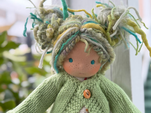 Made with natural fibres, each Little Friend has  hand-dyed hair yarn, a cotton knit “skin,” and is stuffed with West Coast wool for that comforting, natural weight children love. We’re happy to personalize your doll with freckles, a messy buns, or even a name change, just let us know!