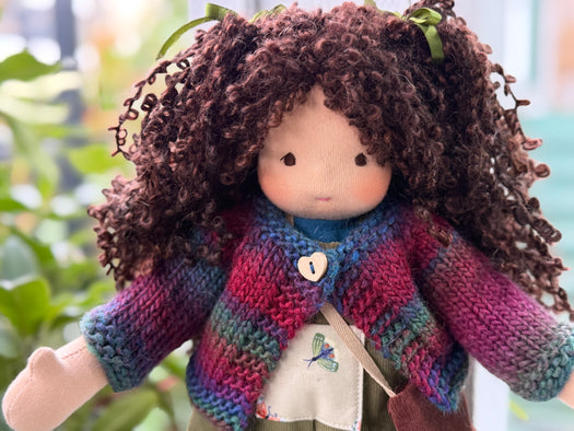Made with natural fibres, each Little Friend has  hand-dyed hair yarn, a cotton knit “skin,” and is stuffed with West Coast wool for that comforting, natural weight children love. We’re happy to personalize your doll with freckles, a messy buns, or even a name change, just let us know!