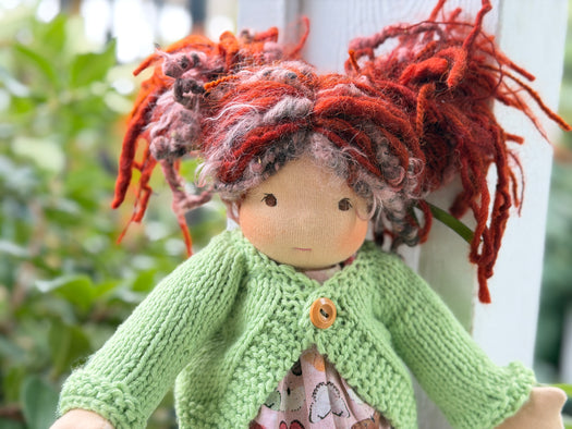 Made with natural fibres, each Little Friend has  hand-dyed hair yarn, a cotton knit “skin,” and is stuffed with West Coast wool for that comforting, natural weight children love. We’re happy to personalize your doll with freckles, a messy buns, or even a name change, just let us know!