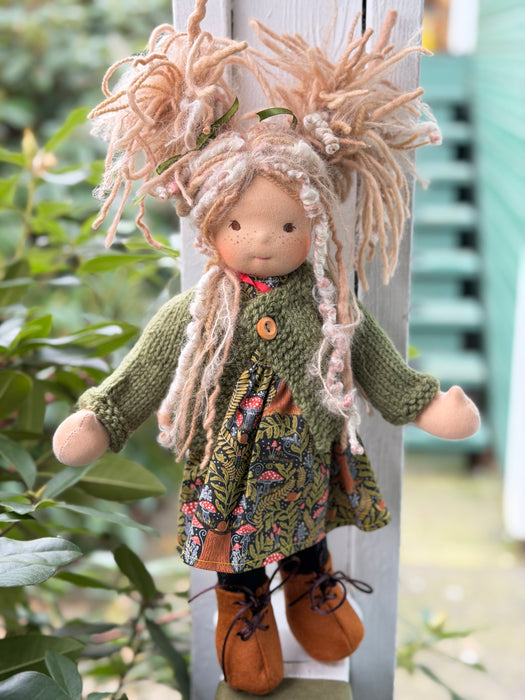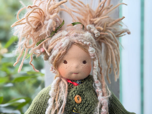 Made with natural fibres, each Little Friend has  hand-dyed hair yarn, a cotton knit “skin,” and is stuffed with West Coast wool for that comforting, natural weight children love. We’re happy to personalize your doll with freckles, a messy buns, or even a name change, just let us know!