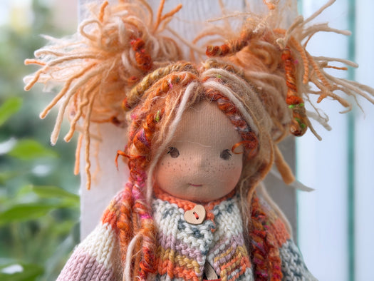 Made with natural fibres, each Little Friend has  hand-dyed hair yarn, a cotton knit “skin,” and is stuffed with West Coast wool for that comforting, natural weight children love. We’re happy to personalize your doll with freckles, a messy buns, or even a name change, just let us know!