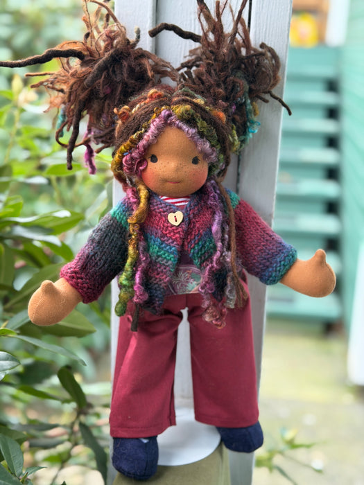 Made with natural fibres, each Little Friend has  hand-dyed hair yarn, a cotton knit “skin,” and is stuffed with West Coast wool for that comforting, natural weight children love. We’re happy to personalize your doll with freckles, a messy buns, or even a name change, just let us know!