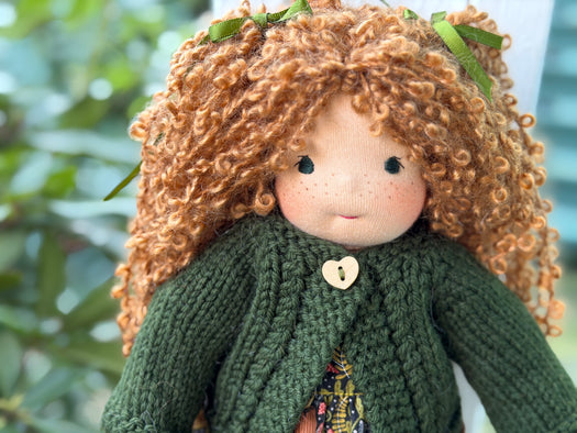 Made with natural fibres, each Little Friend has  hand-dyed hair yarn, a cotton knit “skin,” and is stuffed with West Coast wool for that comforting, natural weight children love. We’re happy to personalize your doll with freckles, a messy buns, or even a name change, just let us know!