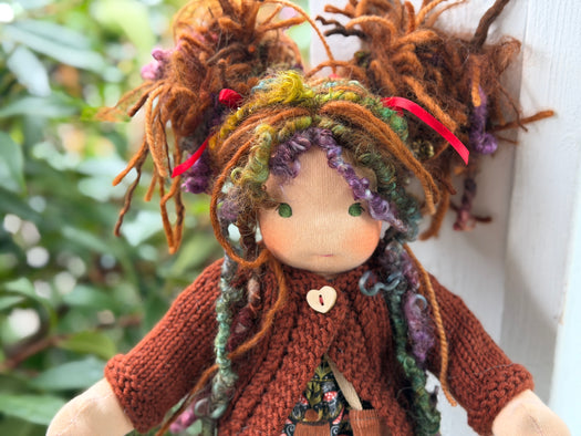 Made with natural fibres, each Little Friend has  hand-dyed hair yarn, a cotton knit “skin,” and is stuffed with West Coast wool for that comforting, natural weight children love. We’re happy to personalize your doll with freckles, a messy buns, or even a name change, just let us know!