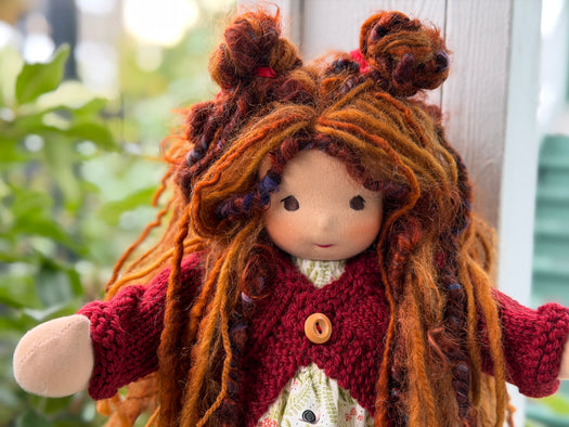 Made with natural fibres, each Little Friend has  hand-dyed hair yarn, a cotton knit “skin,” and is stuffed with West Coast wool for that comforting, natural weight children love. We’re happy to personalize your doll with freckles, a messy buns, or even a name change, just let us know!