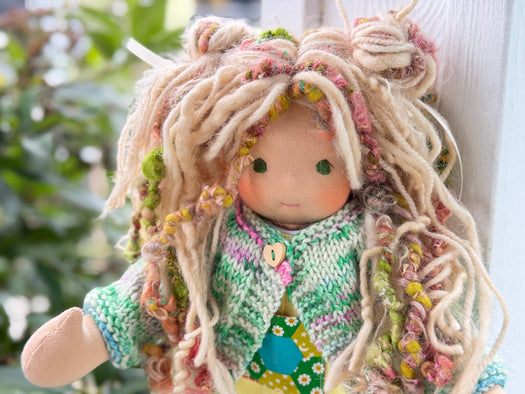 Made with natural fibres, each Little Friend has hand-dyed hair yarn, a cotton knit "skin," and is stuffed with West Coast wool for that comforting, natural weight children love. We're happy to personalize your doll with freckles, a messy buns, or even a name change, just let us know!