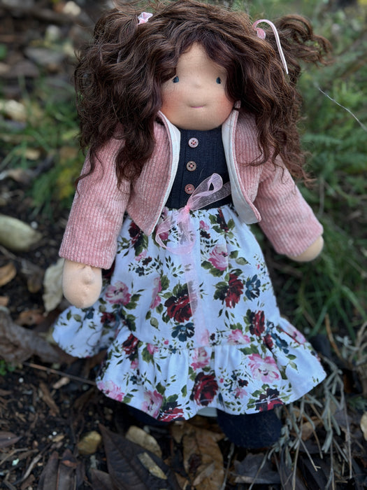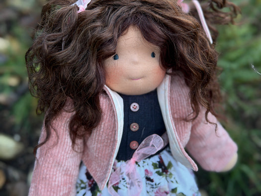 What makes Ashton especially magical is her hair: instead of our traditional yarn, each doll’s mohair is sewn in as a weft— giving it a soft, realistic texture that can be gently styled and cared for like real hair.