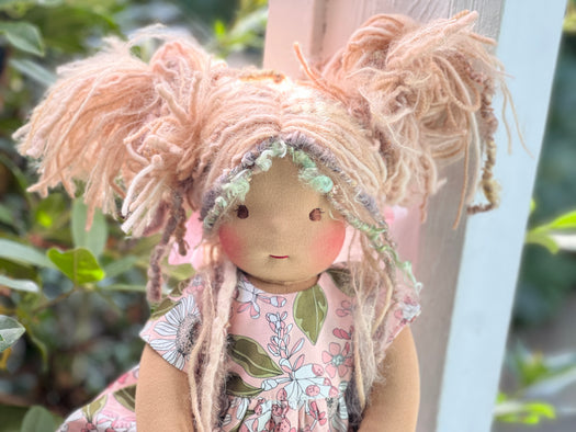 Hair made from natural fibre yarns (like real hair, it may become a little frizzy with love and play, adding to its character!)