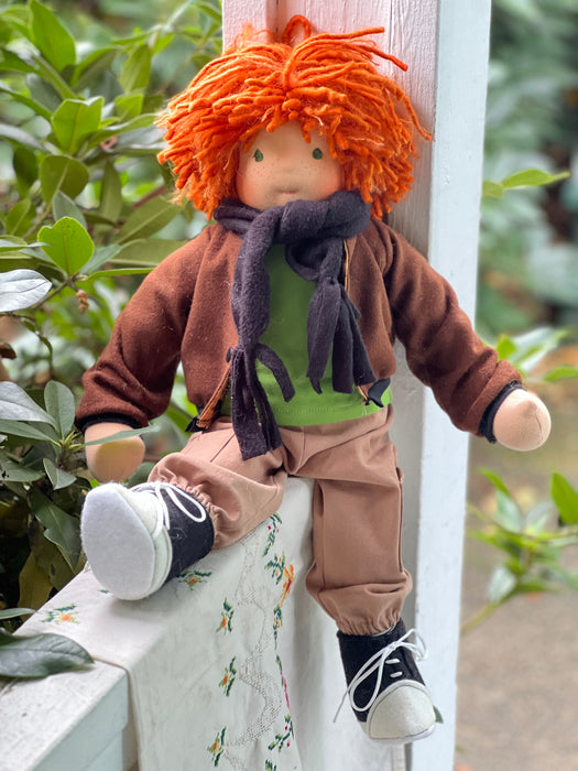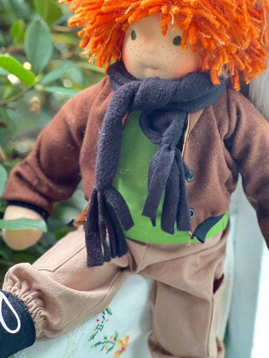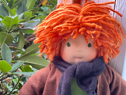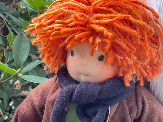 Meet ....., one of our cherished heirloom dolls, handmade with love and intention. Her sunkissed cotton skin comes from specialty tricot sourced in the Netherlands, her eyes are delicately hand embroidered, and her hair is created from wool and mohair yarns many of them hand dyed, spun and hand stitched strand by strand. She’s stuffed with clean, carded Canadian wool, giving her a natural, comforting weight that children adore.