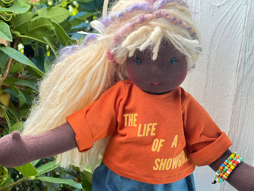 Made with natural fibres, each Little Friend has  hand-dyed hair yarn, a cotton knit “skin,” and is stuffed with West Coast wool for that comforting, natural weight children love. We’re happy to personalize your doll with freckles, a messy buns, or even a name change, just let us know!