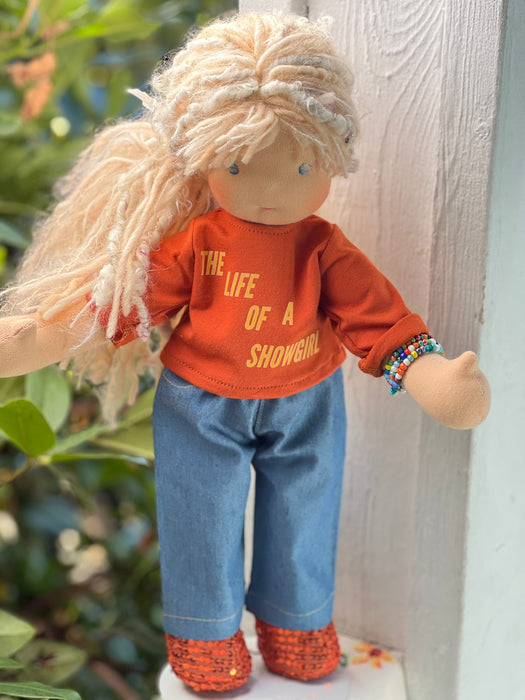 Meet our Little Friend, the heart of the Bamboletta family and our most beloved heirloom doll. At 14" tall, she’s leaner and longer limbed than our Forever Friends, but still carries the same magic .. a tiny secret pocket in her back, holding a crystal heart and note just for your child.