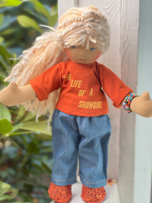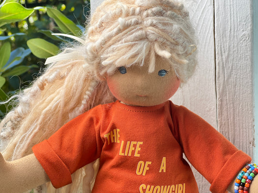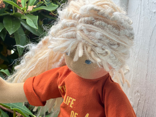Made with natural fibres, each Little Friend has  hand-dyed hair yarn, a cotton knit “skin,” and is stuffed with West Coast wool for that comforting, natural weight children love. We’re happy to personalize your doll with freckles, a messy buns, or even a name change, just let us know!