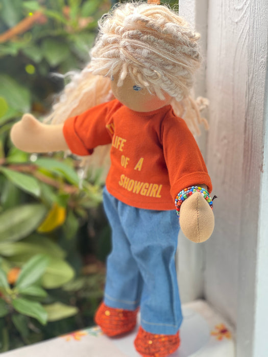 Meet our Little Friend, the heart of the Bamboletta family and our most beloved heirloom doll. At 14" tall, she’s leaner and longer limbed than our Forever Friends, but still carries the same magic .. a tiny secret pocket in her back, holding a crystal heart and note just for your child.