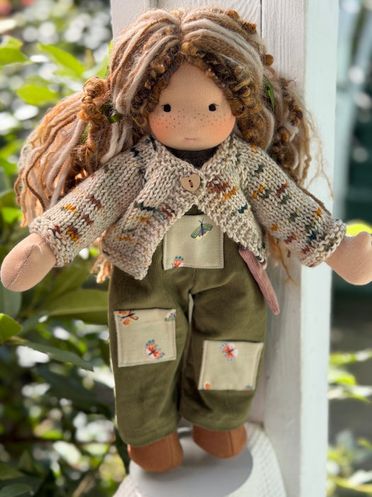 Made with natural fibres, each Little Friend has  hand-dyed hair yarn, a cotton knit “skin,” and is stuffed with West Coast wool for that comforting, natural weight children love. We’re happy to personalize your doll with freckles, a messy buns, or even a name change, just let us know!