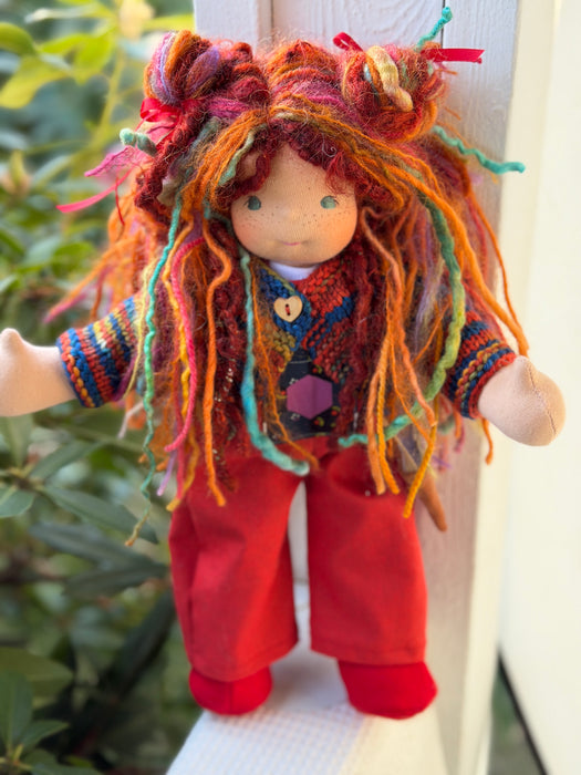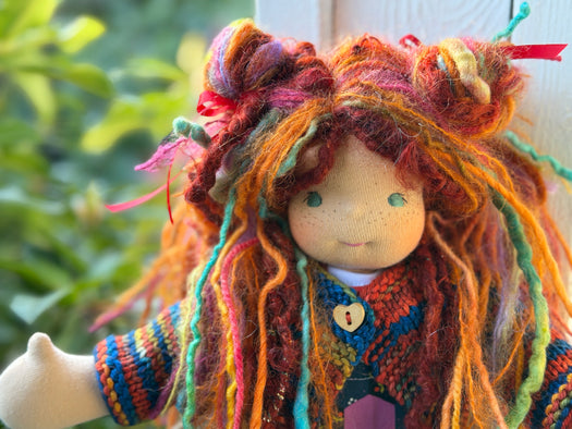 Made with natural fibres, each Little Friend has  hand-dyed hair yarn, a cotton knit “skin,” and is stuffed with West Coast wool for that comforting, natural weight children love. We’re happy to personalize your doll with freckles, a messy buns, or even a name change, just let us know!