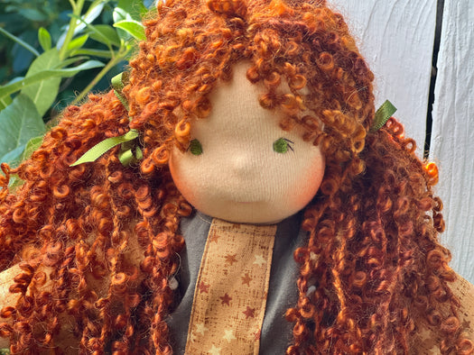 Made with natural fibres, each Little Friend has  hand-dyed hair yarn, a cotton knit “skin,” and is stuffed with West Coast wool for that comforting, natural weight children love. We’re happy to personalize your doll with freckles, a messy buns, or even a name change, just let us know!