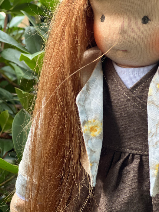 What makes Ashton especially magical is her hair: instead of our traditional yarn, each doll’s mohair is sewn in as a weft— giving it a soft, realistic texture that can be gently styled and cared for like real hair.