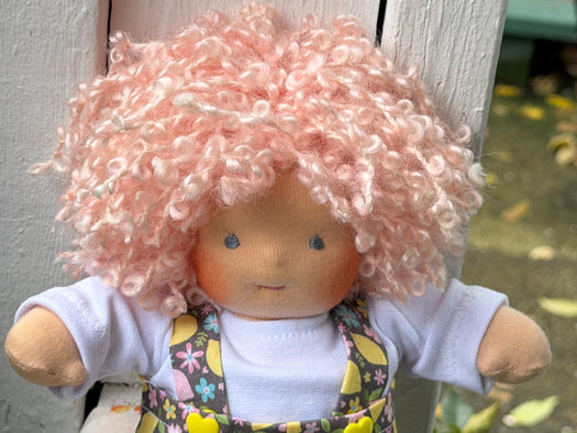 I am excited to offer these little cuties up for adoption today! Measuring about 6–7" long, our Piccolina Baby Dolls are handmade with cotton knit and stuffed with cozy West Coast wool for that soft, natural feel children love. Their hair is crafted from wool and mohair yarns, their sweet faces are hand-embroidered, and each one comes wearing a tiny diaper and matching outfits.