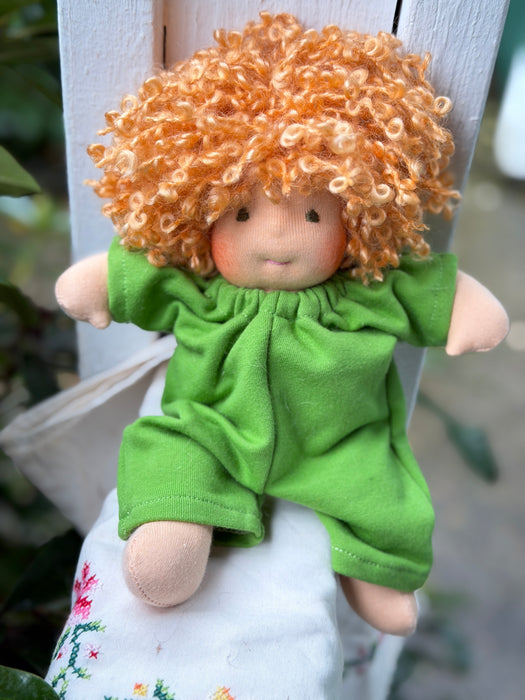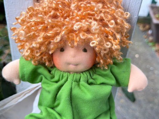 I am excited to offer these little cuties up for adoption today! Measuring about 6–7" long, our Piccolina Baby Dolls are handmade with cotton knit and stuffed with cozy West Coast wool for that soft, natural feel children love. Their hair is crafted from wool and mohair yarns, their sweet faces are hand-embroidered, and each one comes wearing a tiny diaper and matching outfits.