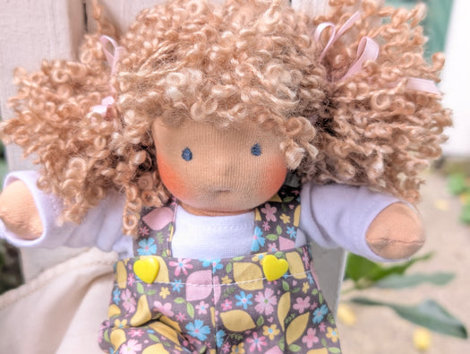 I am excited to offer these little cuties up for adoption today! Measuring about 6–7" long, our Piccolina Baby Dolls are handmade with cotton knit and stuffed with cozy West Coast wool for that soft, natural feel children love. Their hair is crafted from wool and mohair yarns, their sweet faces are hand-embroidered, and each one comes wearing a tiny diaper and matching outfits.