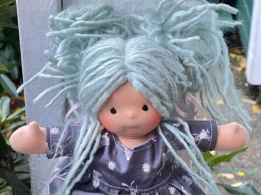What is this, you may ask? Well - this is a Piccolina! Our smallest doll measuring in at 9" of cuteness. These dolls are made of the same amazing ingredients as our other dolls - wool ,cotton and a whole lotta love and care. These dolls have a similar body to our cuddle dolls with bendy limbs that can sit. They are just so wee and cute - I love them.