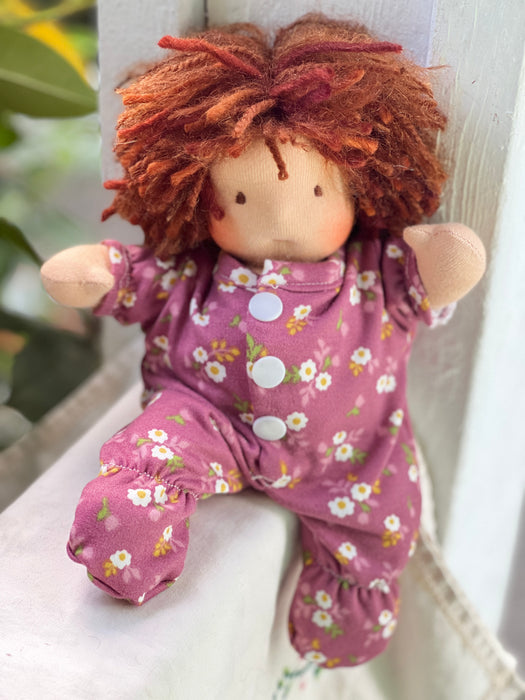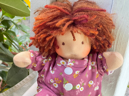 I am excited to offer these little cuties up for adoption today! Measuring about 6–7" long, our Piccolina Baby Dolls are handmade with cotton knit and stuffed with cozy West Coast wool for that soft, natural feel children love. Their hair is crafted from wool and mohair yarns, their sweet faces are hand-embroidered, and each one comes wearing a tiny diaper and matching outfits.