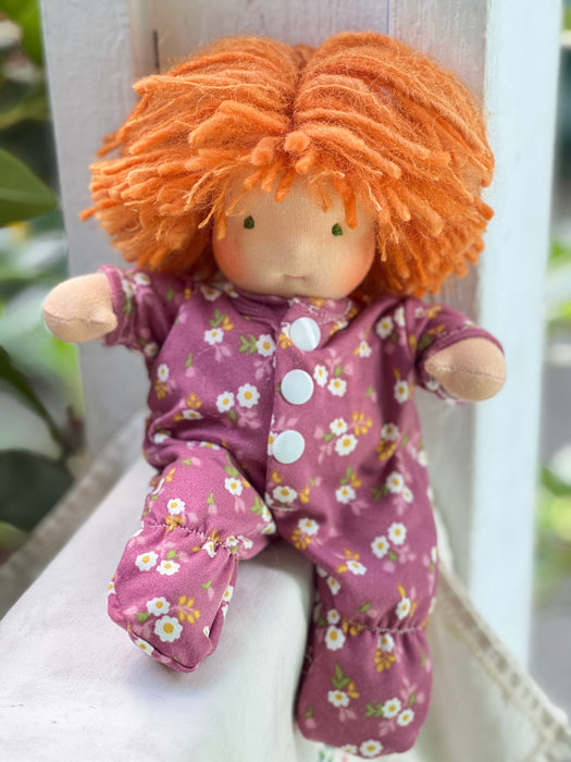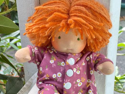 I am excited to offer these little cuties up for adoption today! Measuring about 6–7" long, our Piccolina Baby Dolls are handmade with cotton knit and stuffed with cozy West Coast wool for that soft, natural feel children love. Their hair is crafted from wool and mohair yarns, their sweet faces are hand-embroidered, and each one comes wearing a tiny diaper and matching outfits.
