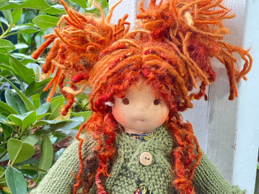 Made with natural fibres, each Little Friend has  hand-dyed hair yarn, a cotton knit “skin,” and is stuffed with West Coast wool for that comforting, natural weight children love. We’re happy to personalize your doll with freckles, a messy buns, or even a name change, just let us know!