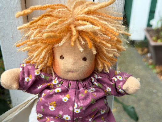 I am excited to offer these little cuties up for adoption today! Measuring about 6–7" long, our Piccolina Baby Dolls are handmade with cotton knit and stuffed with cozy West Coast wool for that soft, natural feel children love. Their hair is crafted from wool and mohair yarns, their sweet faces are hand-embroidered, and each one comes wearing a tiny diaper and matching outfits.