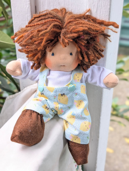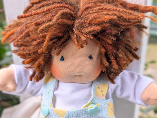 I am excited to offer these little cuties up for adoption today! Measuring about 6–7" long, our Piccolina Baby Dolls are handmade with cotton knit and stuffed with cozy West Coast wool for that soft, natural feel children love. Their hair is crafted from wool and mohair yarns, their sweet faces are hand-embroidered, and each one comes wearing a tiny diaper and matching outfits.