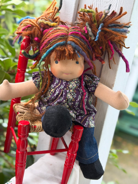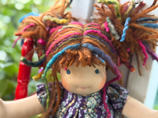 Our Cuddle Dolls are a smaller version of our Sitting Dolls. Their design makes them perfect for children who love to carry their doll everywhere — huggable, posable, and endlessly lovable. These are great 'first dolls' as their hair is a bit simpler with no hand spun art yarn in it and simple clothing for dressing and playing.