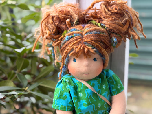Hair made from natural fibre yarns (like real hair, it may become a little frizzy with love and play, adding to its character!)